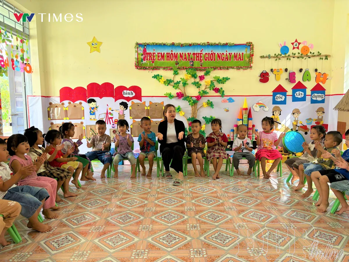Cô và trò tại một điểm trường Mầm non ở Điện Biên. Ảnh: Minh Tuấn