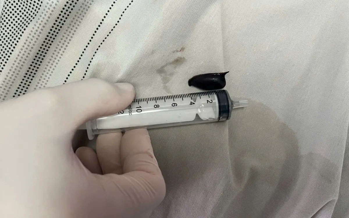 Theo bác sĩ CKII Đào Anh Dũng – Trưởng khoa Ngoại Tổng hợp, hình ảnh CT và thăm khám lâm sàng cho thấy phổi phải của bệnh nhân có dấu hiệu viêm mạn tính, nhiều khả năng do dị vật gây ra. Ekip tiến hành nội soi phế quản và phát hiện một hạt hồng xiêm nằm ở thùy dưới phổi phải. Dị vật được gắp ra thành công sau gần 2 giờ làm thủ thuật.