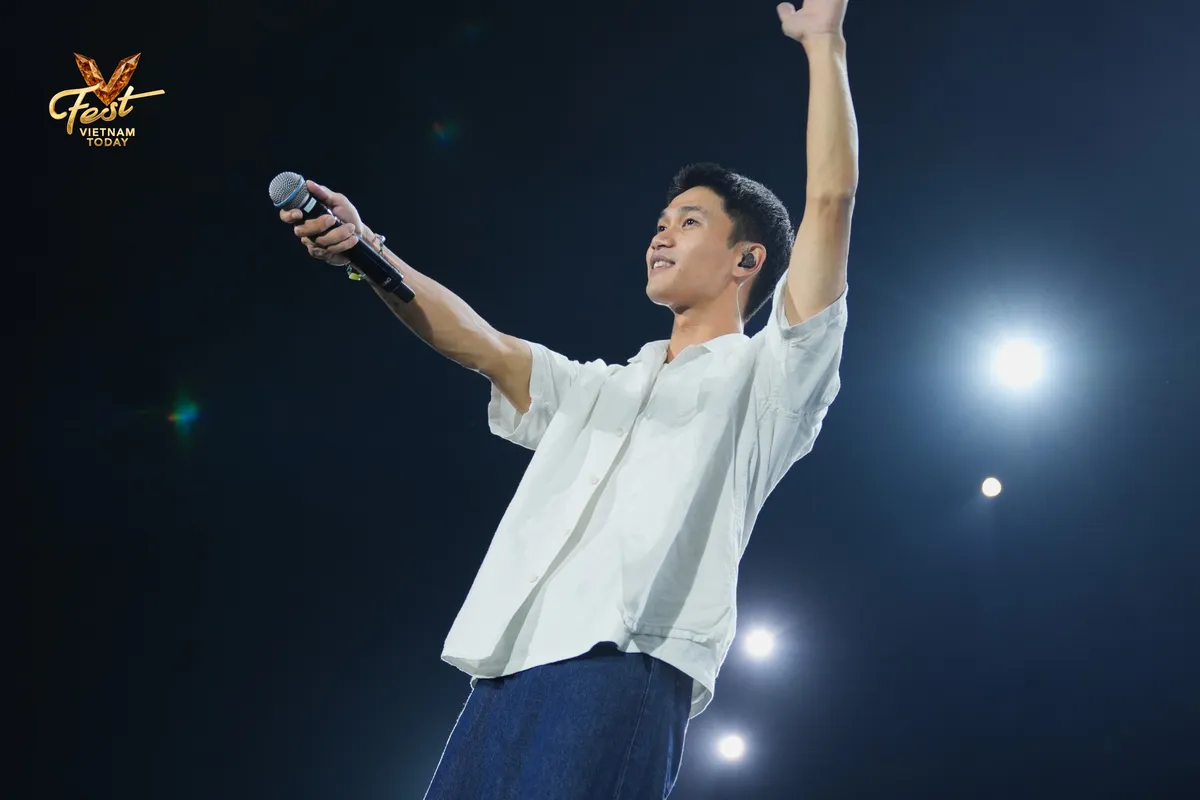 Trong phần trình diễn của mình, Nguyễn Hùng chọn mở đầu bằng ca khúc 5 ngón bàn tay mang tới sự mộc mạc, dịu dàng. Giai điệu nhẹ nhàng như thì thầm vào tai người nghe, mang tới những phút giây đặc biệt trong không khí bùng nổ của đại nhạc hội.